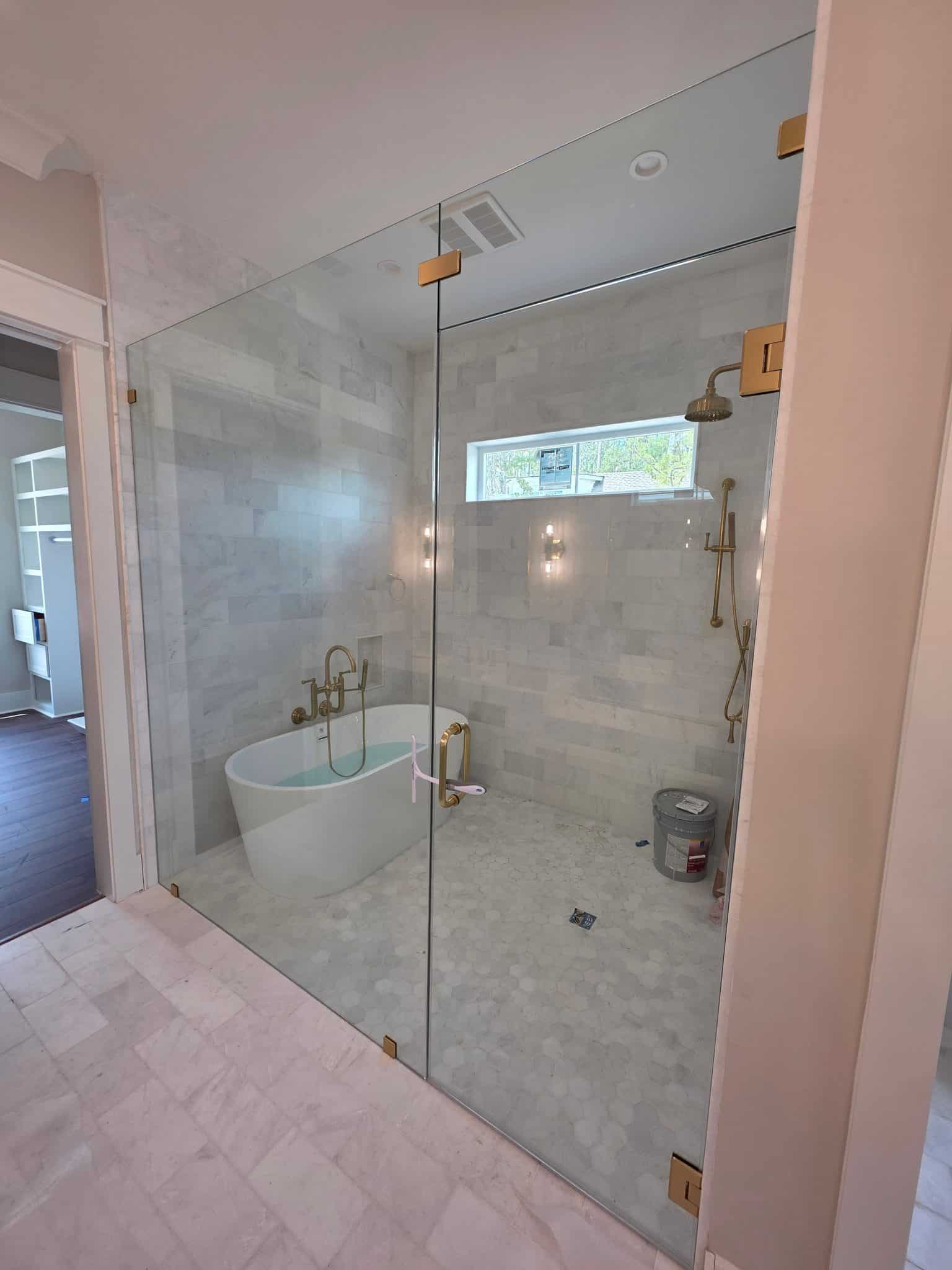 Create a clean, contemporary look with our custom inline shower doors — designed for perfect alignment and effortless elegance. Featuring high-clarity tempered glass and premium hardware, these doors offer a seamless fit that enhances both style and functionality.